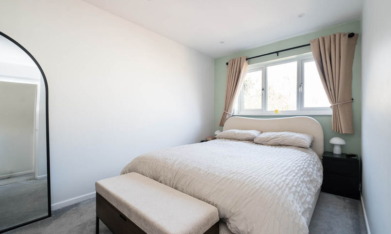 The sitting room is well-proportioned and has a large window to the front, filling the space with light.