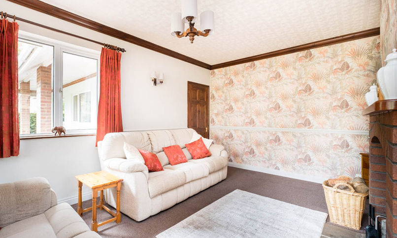 Directly behind the bungalow is a covered veranda which runs the full width of the property and is a great spot for looking out over the garden and across the beautiful adjacent countryside, whatever the weather. The garden is comprised of a large lawn area and a few shrubs as well as a small patio and an ornate fish pond, all flanked by flower beds and mature trees. The real star of the garden, though, is the stunning rural backdrop: Herefordshire countryside at its best.