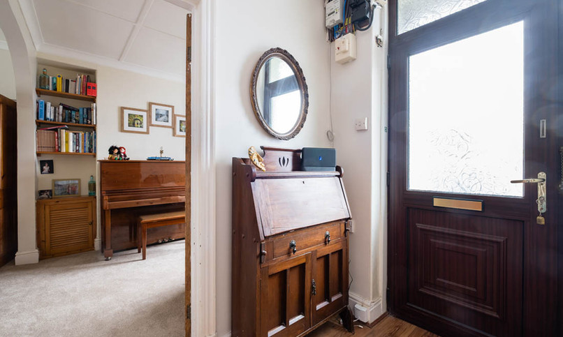 Enter beneath the canopied front door into the reception hall, here doors lead left and right and stairs head up to the first floor. There is also useful under stairs storage for coats and shoes or a large larder.