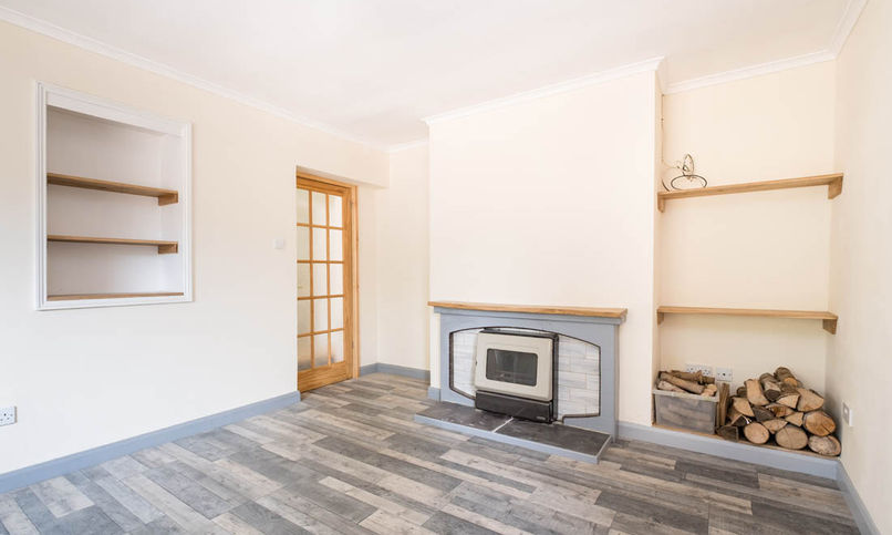 The sitting room is situated to the front and is light and airy, courtesy of dual aspect windows. A wood burner sits within a timber and tile fireplace and there are various wooden shelves and attractive nooks around the room for housing books and keepsakes.